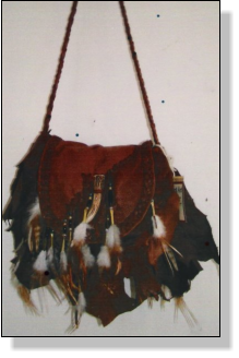 Deerskin handbags of all sizes and styles, braided, beaded, fringed and feathers.